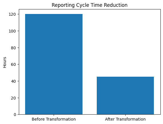 Reporting Cycle Time 120 Hours 45 Hours 62% Reduction