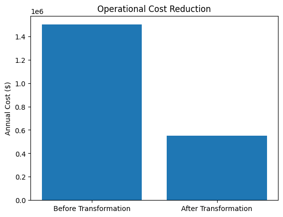 The transformation fundamentally repositioned the client’s financial operations function from a transactional processing unit into a strategic intelligence capability. AI-enabled automation reduced operational latency, improved accuracy, and allowed human expertise to focus on decision support and portfolio optimization.