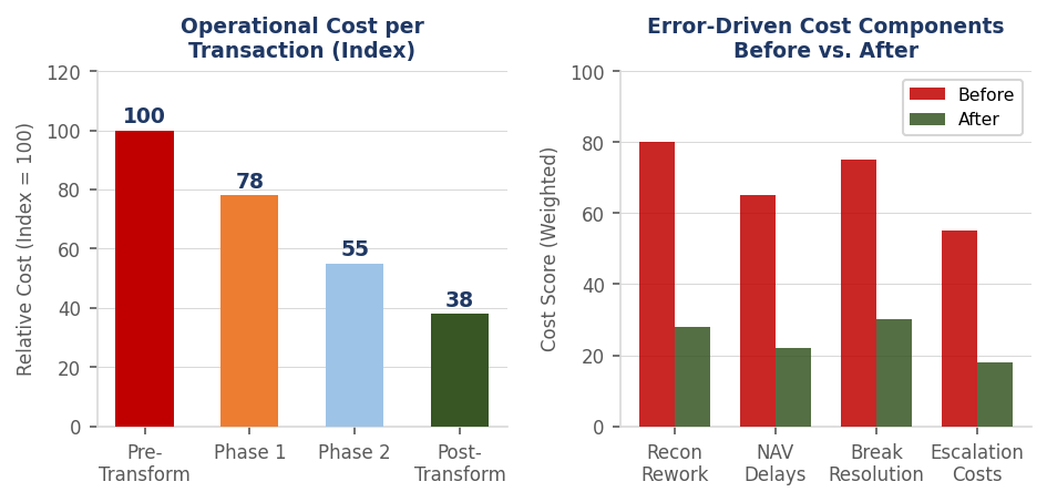 The firm transitioned from fragmented manual workflows to an AI-augmented operational platform capable of supporting sustained AUM growth. Reconciliation accuracy improved, NAV timelines stabilized, and operational capacity scaled without linear increases in staffing. Operational intelligence became embedded infrastructure rather than post-event reporting.